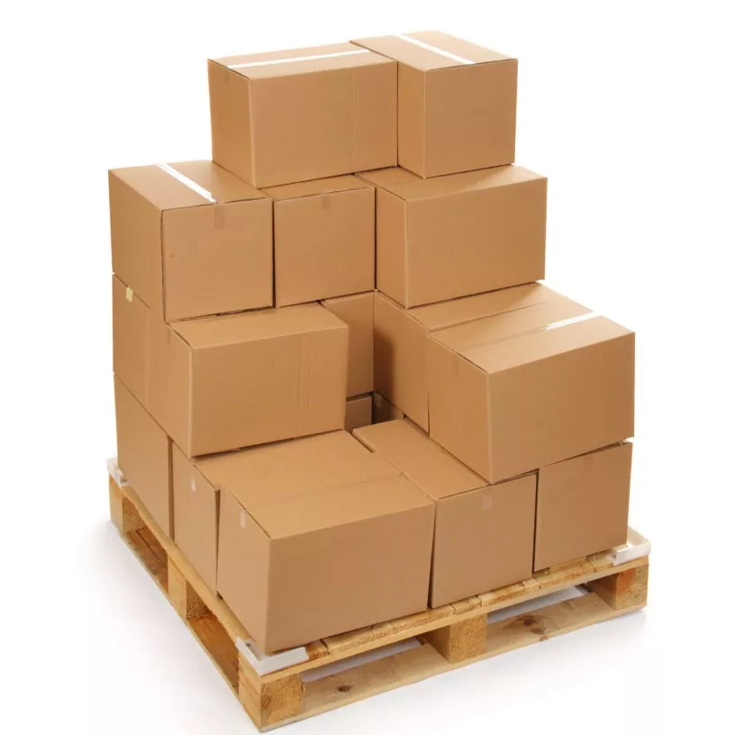 Kotak karton dengan palet
